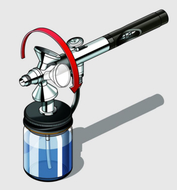 Diese patentierte Neuheit erlaubt dem Modellbauer ein Höchstmaß an Flexibilität und ermöglicht das Sprühen sehr großer und auch sehr kleiner Farbmengen.