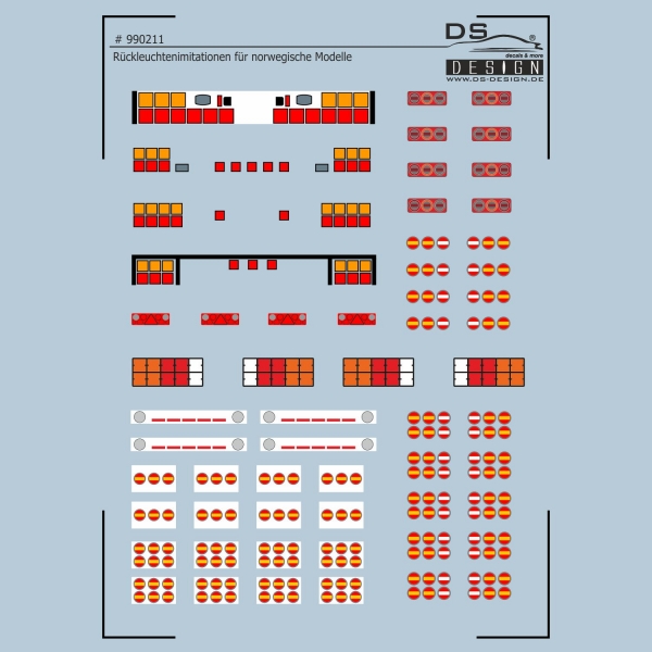 Das Decal # 990211 beinhaltet die typischen im LED-Design gestalteten Rückleuchtenimitationen moderner Fahrzeuge. Diese werden vielfach auch bei LKW's aus dem skandinavischen Raum verbaut.