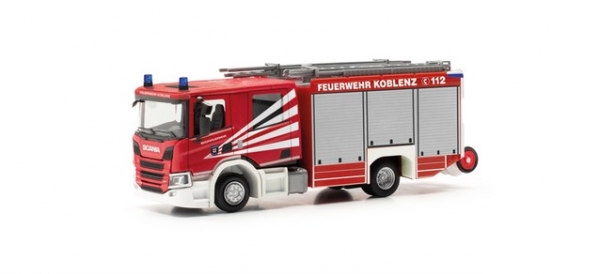 In Anlehnung an das Vorbild der Feuerwehr Koblenz wird dieses HLF mit vorbildgerechtem Design produziert. Erstmalig wird die Scania CrewCab mit zwei Hella-Rundumkennleuchten produziert.