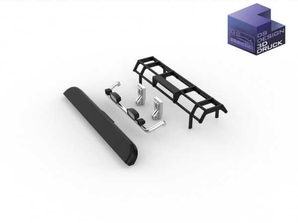 Sie erhalten hier ein Set an Zubehörteilen für die Scania Kabine P410 110034. In dem Set enthalten sind ein Astabweiser für die Herpa DBS 4000 inkl. Öffnung für Martinhörner 4-er aus 550058. Zudem gibt es einen Lampenbügel für das Dach, Schäkel für die Frontstoßstange und einen Unterfahrschutz ebenfalls für die Frontstoßstange. Das Zubehör wurde anhand des WLF der Feuerwehr Hamburg erstellt und ist passgenau für unsere Kabine erstellt.