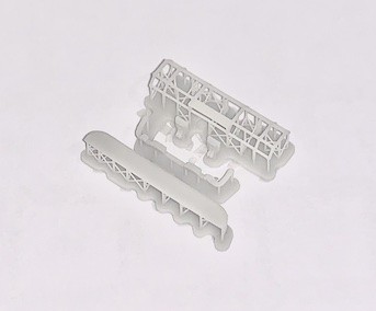 Das Bauteil kann mit handelsüblichen Farben lackiert und mit Sekundenklebern geklebt werden. Vor der Lackierung und dem Zusammenbau müssen allerdings das Stützmaterial entfernt, und das Bauteil etwas mit einem feinen Schleifpapier angeraut werden. Sehr gut eignet sich hier ein Schleifvlies. Für das Entfernen des Stützmaterials empfehlen wir einen feinen Seitenschneider und eine kleine Feile.