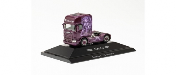 Ein Prunkstück aus den Stelzl Fuhrpark stellt das Vorbild für das Modell einer mittlerweile klassischen Scania R `13 Topline-Zugmaschine, die mit bekannten Motiven von Walter Rosner gestaltet wurde. Diese Zugmaschine wird in einer einmaligen Auflage in der bekannten Vitrine ausgeliefert.