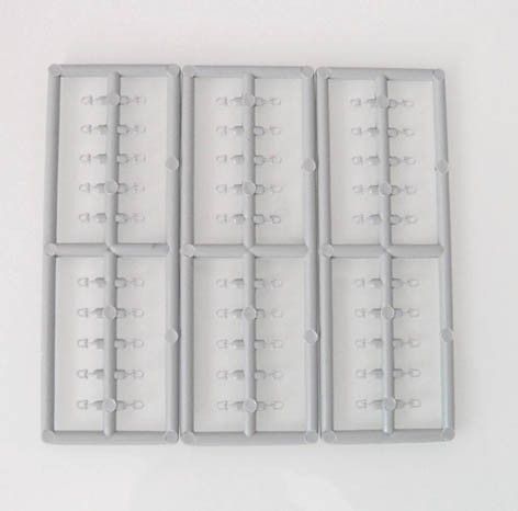 Hierbei handelt es sich um Schäkel für LKW und Einsatzfahrzeuge. Die Schäkel wurden am Spritzling so konstruiert, dass diese nach hinten eine kleine anklebbare Kante aufweisen. Der Schäkel wird dann so an der Stoßstange des Modells positioniert, so dass er nicht am Modell anliegt, sondern wie am Vorbild, freitragend angebracht werden kann.