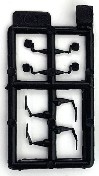 Sie erhalten hier ein Bauteil, dass im Spritzgussverfahren erstellt wurde. Es handelt sich dabei um die Scheibenwischerarme der Mercedes-Benz G-Klasse, die Busch nur vereinzelt an die Modelle montiert. Sie eignen sich also zum Nachrüsten. Ebenfalls sind in dem Spritzling auch die Außenspiegel für den Toyota J4 enthalten, die auch an anderen Modelle angebracht werden können.