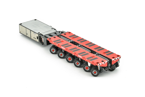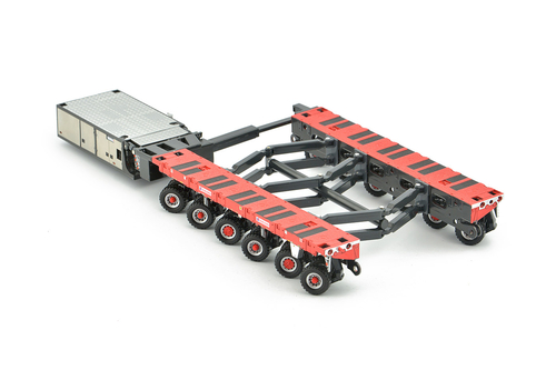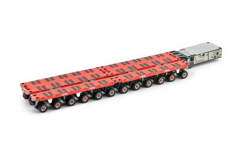 Hierbei handelt es sich um zwei SPMT Hälften die zusammengebolzt als reguläres Modul fungieren oder in Kombination mit anderen z.b. eineinhalbfache Breite ermöglichen. So werden auf identischer Fahrzeuglänge 50% zusätzliche Nutzlast geboten ohne gleich die knapp 5 Meter Breite einer doppelt parallel gekuppelten Version zu haben.