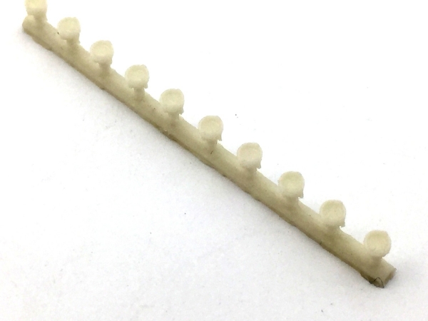 Die Schlauchkupplungen können für Förderschläuche verwendet werden, können aber auch als Anschlussstücke für Förderleitungen bei diversen Feuerwehrfahrzeugen/-modellen verwendet werden. Der Durchmesser der Kupplungen beträgt 2 mm und diese sind mit einem Einsteckstift mit einer Länge von ebenfalls 2 mm ausgestattet. Dieser kann leicht mit einem Cutter entfernt werden, so dass die Anschlussstücke leicht auf ein Feuerwehrmodell geklebt werden können.