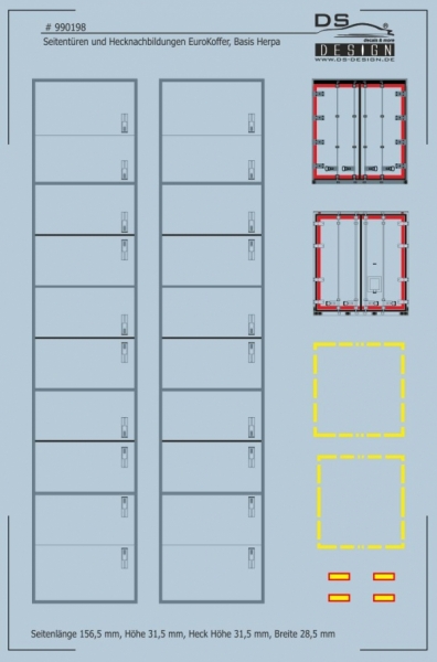 Seitentüren für HERPA EuroKühlKoffer HZG incl. Hecknachbildung