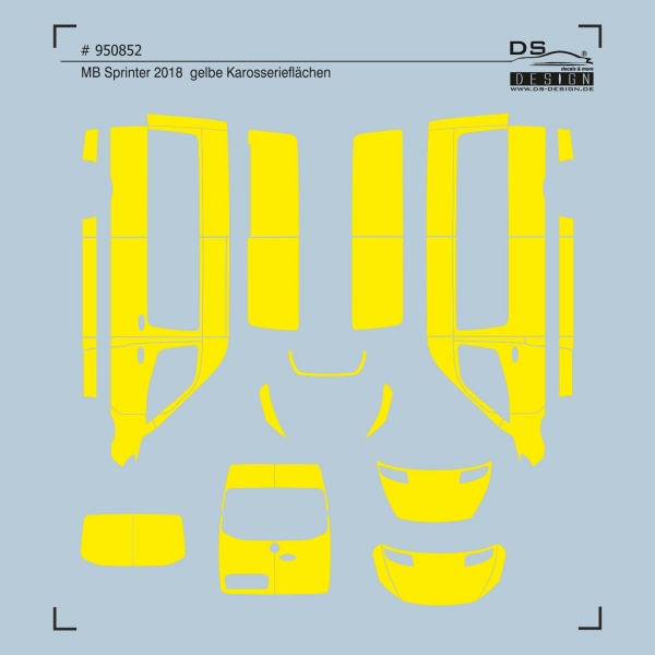 Sie erhalten hier ein im Digitaldruckverfahren hergestelltes Decal mit gelben Karosserieflächen für den Mercedes-Benz Sprinter 2018 der Firma Herpa.