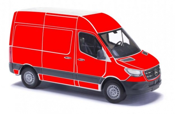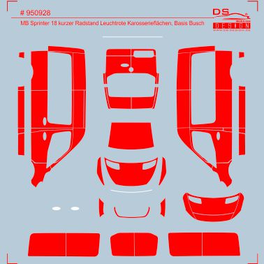 Sie erhalten hier ein im Siebdruckverfahren hergestelltes Decal mit leuchtroten Karosserieflächen für den MB Sprinter 18 kurzer Radstand mit Hochdach der Firma Busch.