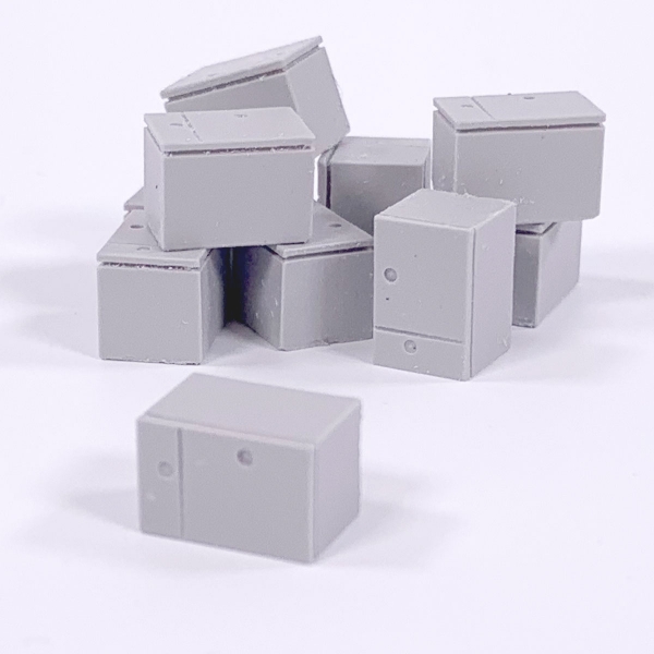 Es handelt sich hierbei um einen Staukasten, der mit einem Verschluss und einer erkennbaren Klappe ausgestattet ist. Nach dieser Klappe verläuft eine Nut, die die Trennung zwischen dem eigentlichen Staukasten und der Verschlussklappe darstellen soll. Diesen Staukasten findet man vielfach an Anhängern und Aufliegern oder auch bei einzelnen Auslieferungsfahrzeugen oder Sattelzugmaschinen. Diverse Materialien können darin beim Vorbild, welches aus Metall gefertigt ist, verstaut werden.