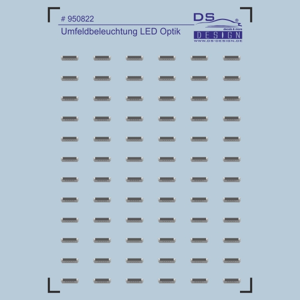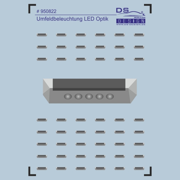Das Decal # 950822 beinhaltet Umfeldbeleuchtungen in LED Optik. Diese sind in einer 3D-Optik gezeichnet, so dass diese am Modell angebracht vorbildkonform wirken.