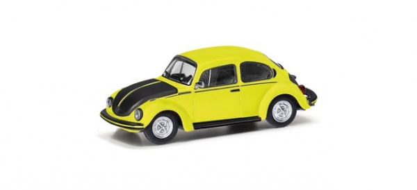 Legendär ist bei dem VW Käfer 1303 die Variante „GSR“, der gelb-schwarze Renner. In gelber Farbgebung mit schwarzen Applikationen wird das Modell authentisch bedruckt.
