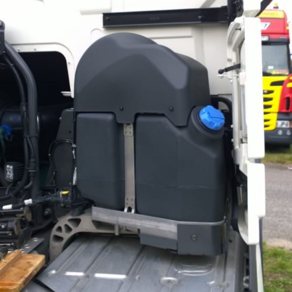 Das Bauteil besteht aus dem eigentlichen AdBlue-Tank und einer kleinen Halterung. So kann der AdBlue-Tank vorbildkonform am Chassisrahmen angebracht werden.