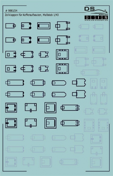 Dieses Decal beinhaltet die typischen Zollklappen, die bei Festaufbauten im internationalen Verkehr angebracht sind. Damit können Sie diese optisch gut darstellen. Sie werden in schwarz und silber gedruckt angeboten.