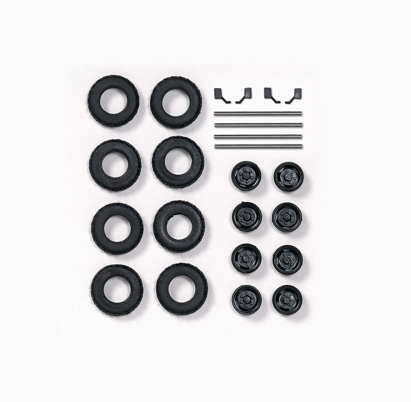 Umbausatz für 2 LKW mit Reifen, Felgen und Achsen sowie zwei Sätze Außenspiegel.